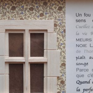 « L’Homme qui marche » et « Le Chien » d’Alberto Giacometti dans un paysage de Nicolas de Staël reproduit en papier népalais (papier Lokta). Cadre en bois clair.