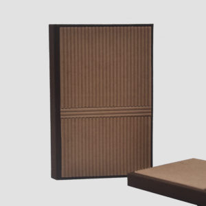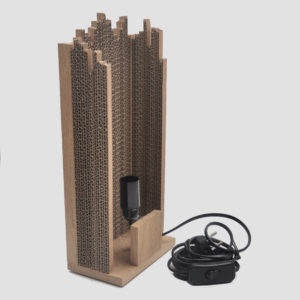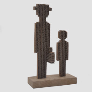 Poisson (carpe) en carton ondulé sur socle en bois (chêne).